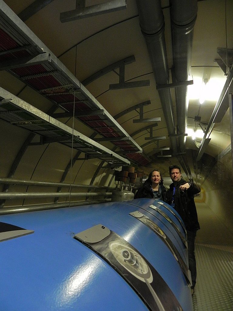Die Röhre als solches wurde übrigens deswegen hier gebaut, weil die Felsstruktur in diesem Gebiet ideal für einen solchen Tunnel ist. Da der Fels allerdings etwas „schräg“ im Erdreich liegt, neigt sich der Tunnel um etwa 1,3 %, liegt also etwas schief in der Erde.
