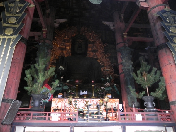 Zuerst der Tempel Todaiji, ein sehr schöner Tempel mit der größten bronzenen Buddhastatue der Welt, die in dem größten aus Holz gebauten Gebäude der Welt steht. Und das im übrigen, obwohl der Tempel neu aufgebaut wurde und die Halle nur noch 2/3 der Ursprungsgröße besitzt.
