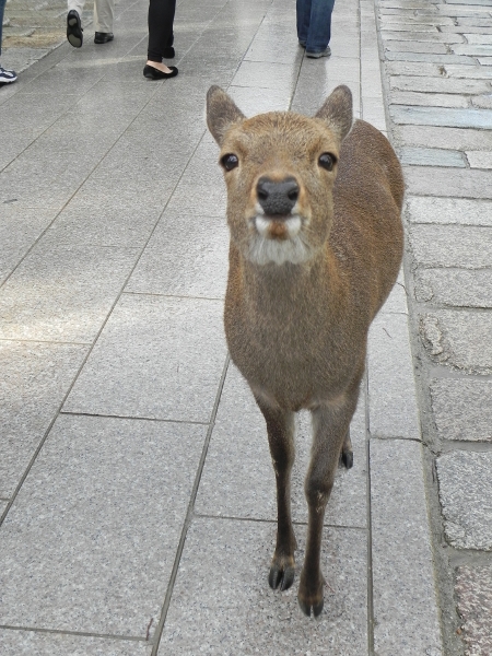 Was vor dem Tempel liegt (und was Buddha sicherlich nicht jeden Tag sehen möchte) ist der Nara Park. Dieser Park ist insofern sehr berühmt, als das er etwa 1200 frei herumlaufende Rehe (Sikahirsche) beherbergt, die dem buddhistischen Glauben nach heilig sind.