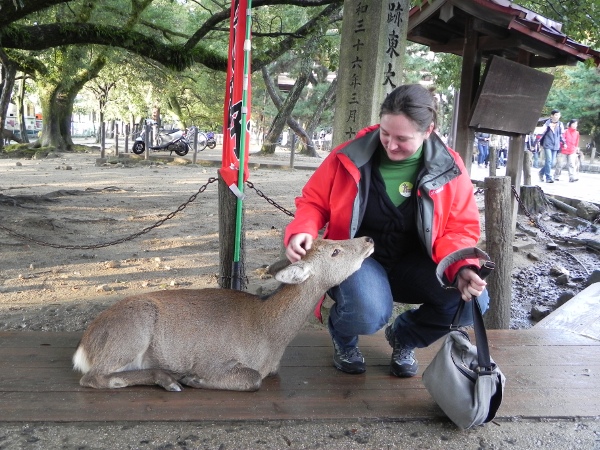 Nach einiger Zeit ging es dann zum Treffpunkt für die über unserem Reisebüro gebuchten Tour nach Nara, von 710 bis 784 unter dem Namen Heijo-kyo (analog To-kyo oder Kyo-to) die Hauptstadt Japans. In einem Bus voller Engländer, Amis, Franzosen und Russen (alle meine Lieblings-Touristen-Nationen vereint!) ging es mit einer relativ gut Englisch sprechenden Führerin nach Nara. In Nara selber standen ein Tempel, ein Schrein und der Nara Park auf dem Programm.