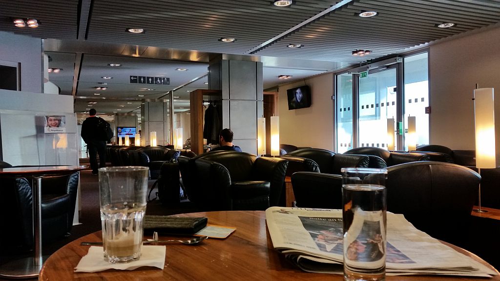 Aktuell sitzen wir in Düsseldorf in der Senator Lounge und genießen einen leckeren Kaffee und einen Smoothie.