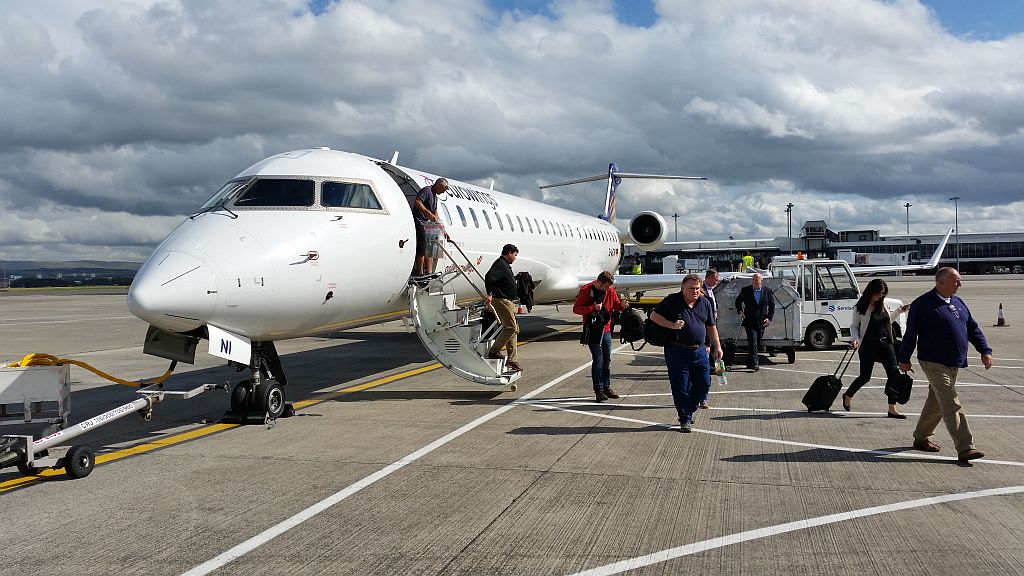 Eine schöne, kleine Maschine die uns in 1 1/2 Stunden von Düsseldorf nach Glasgow gebracht hat.