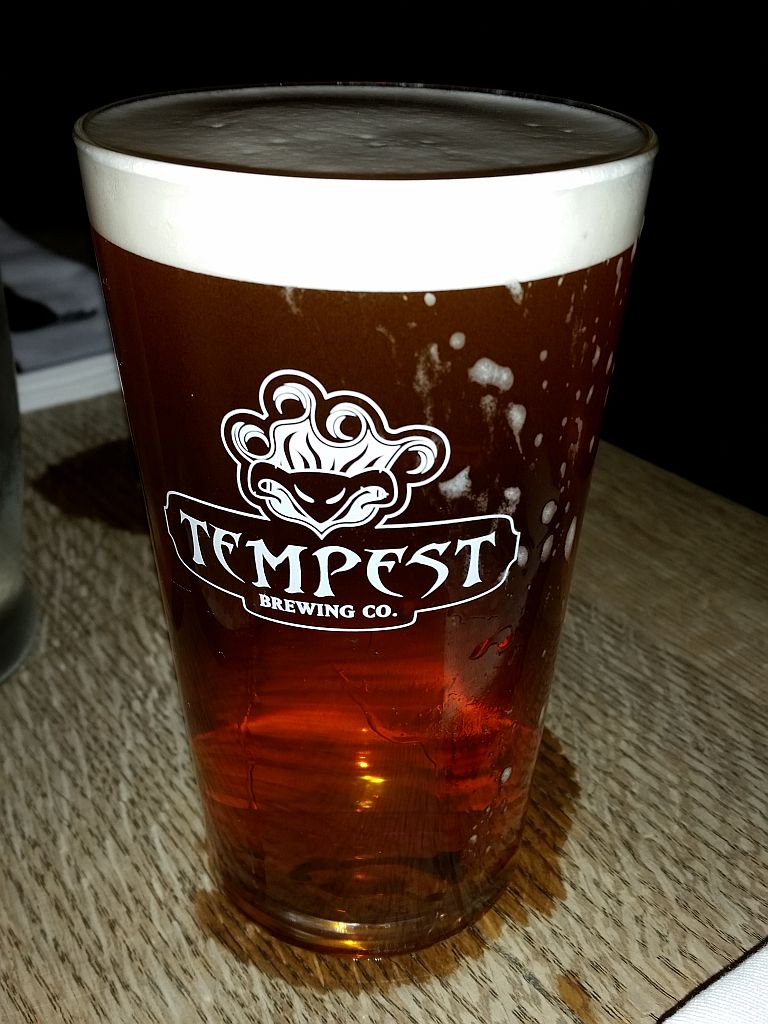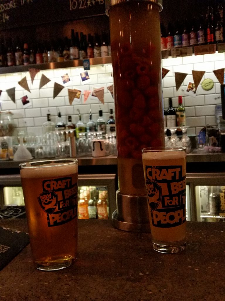 Und der Laden war voll – wir haben noch so eben einen Platz an der Bar gefunden und uns noch ein, zwei verschiedene Biere zu Gemüte geführt. Meike hatte beispielsweise zu Beginn gleich ein „Temtest Saison Solaire with fresh Raspberries“ (rechts im Bild):