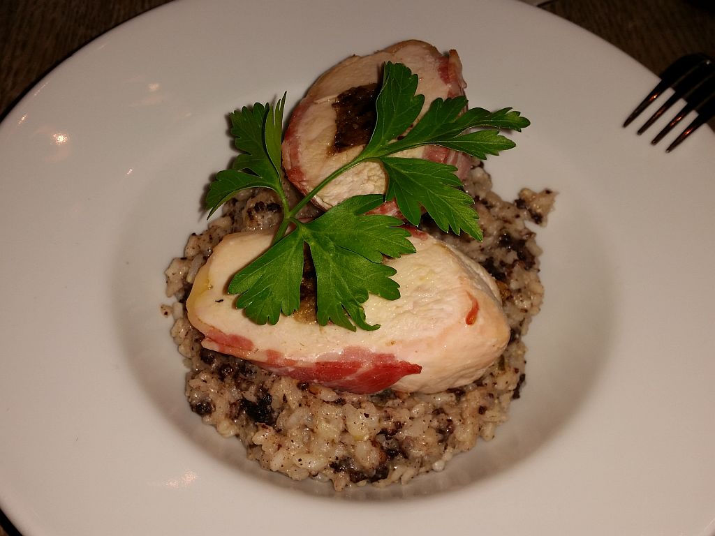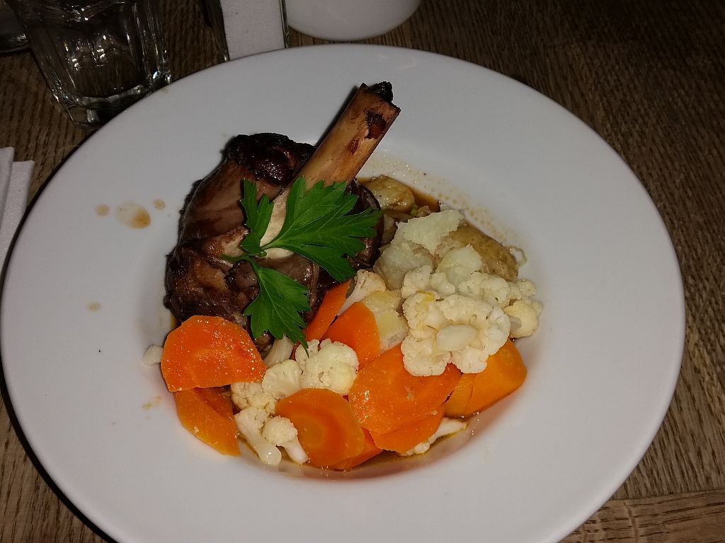 Zu Essen gab es „Lamb shank“ mit Kartoffeln und Gemüse für Meike (war durchwachsen, etwas fad im Geschmack) und Hühnerbrust mit Haggis gefüllt und Risotto mit Black pudding für Jens (super lecker).