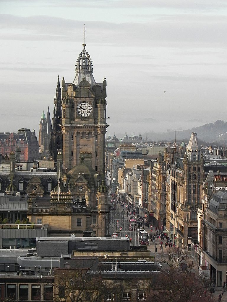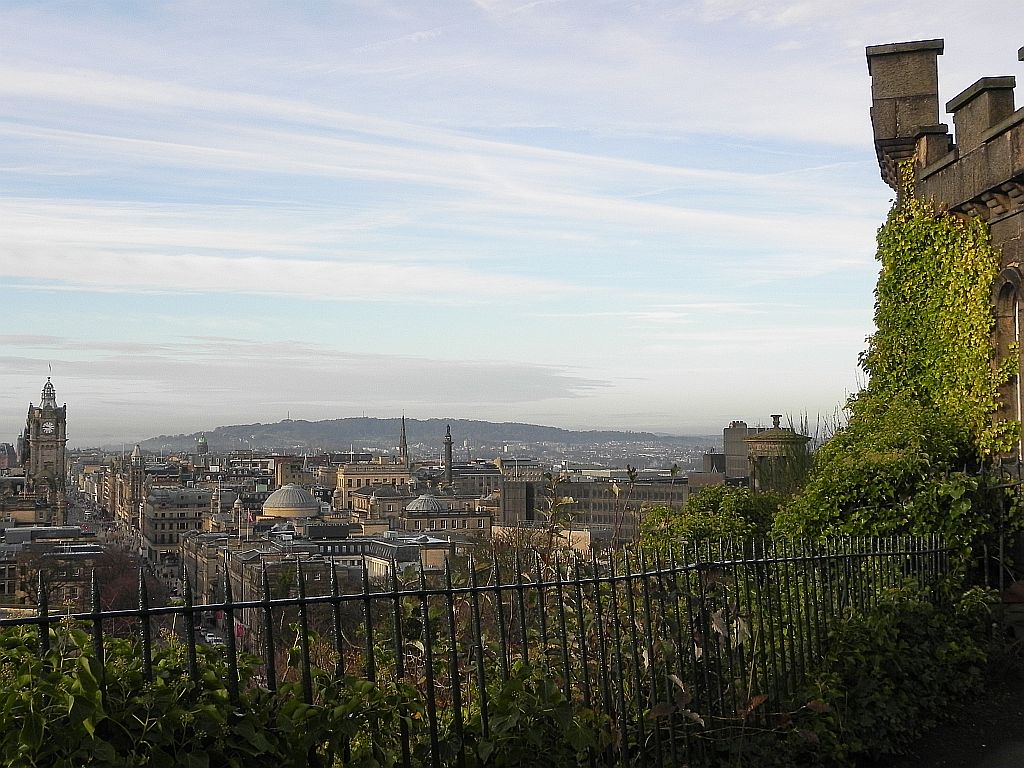 Schöne Tele-Blick auf die sich bereits füllende Princess Street. Auf dem Calton Hill wurde es auch langsam voller, wobei es nachmittags immer schlimmer sein soll.