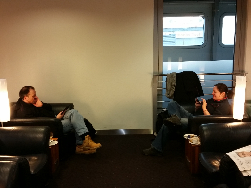 Zuerst ging es recht früh nach Düsseldorf – das hat auch alles geklappt. Wir waren sogar so früh da, dass die Schalter der Swiss Air noch nicht offen waren und wir warten mussten. Danach ging es erst einmal durch die Sicherheitskontrolle und zu einem Frühstück in die Lounge.