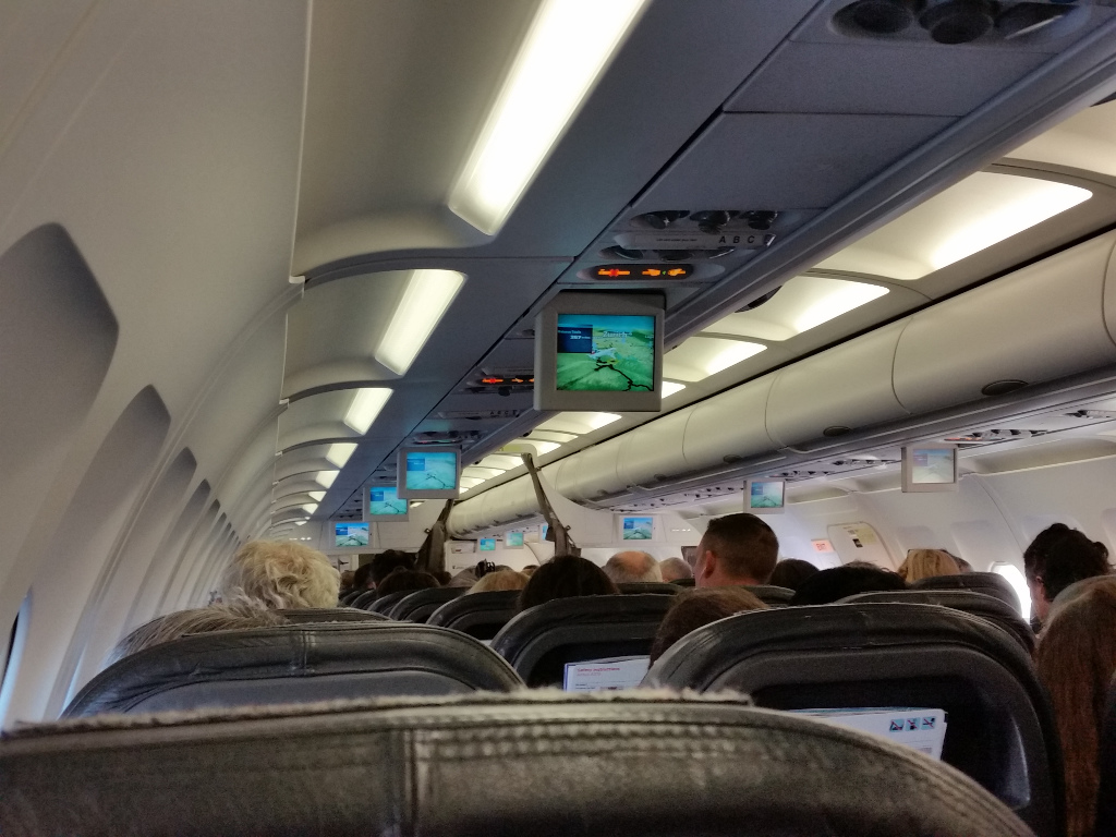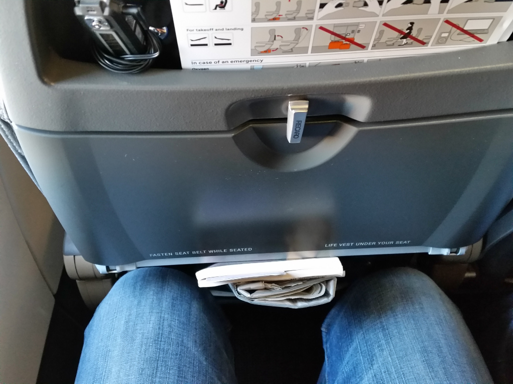 Nach einer Wartezeit gingen wir zum Gate und stiegen in die fast komplett volle Maschine ein. Beinfreiheit gab es jetzt nicht so wirklich, aber das sollte für die 50 Minuten Flug auch reichen.
