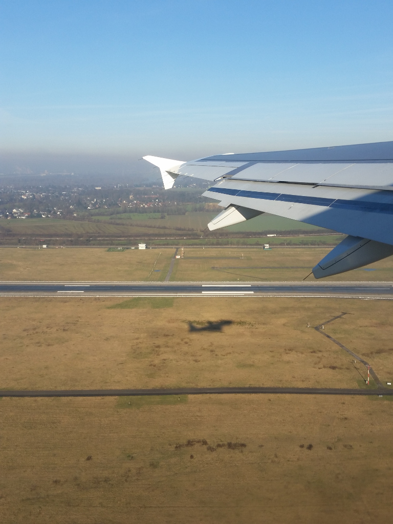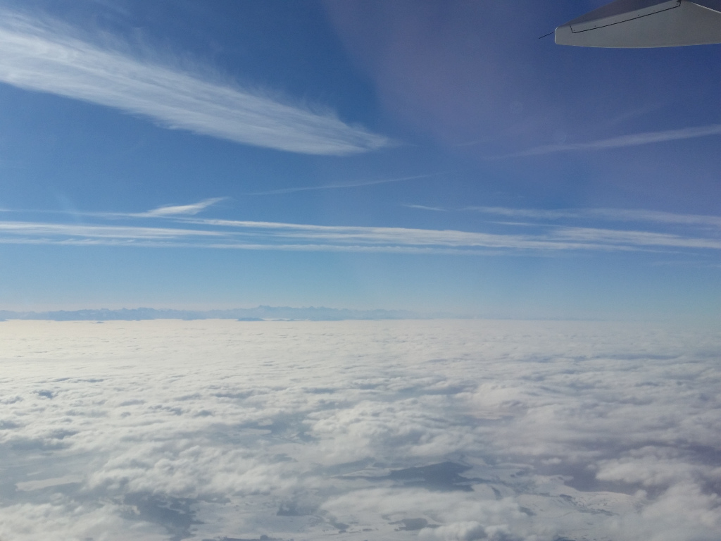 Ab dann waren wir von Mr. Bean abgelenkt und wurden erst durch die Durchsage des Piloten, dass wir immer noch zu früh da wären und jetzt über Donaueschingen eine Warteschleife drehen dürfen. Was dann zu schönen Ausblicken über die schwäbische Alp führte.