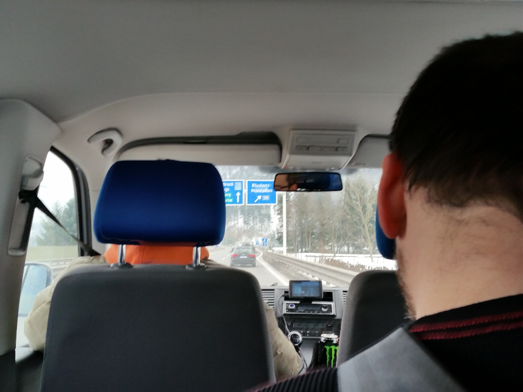 Gepäck, Einreise, etc – alles war in wenigen Minuten erledigt. Was bedeutete, dass wir auf unser Taxi warten mussten. Aber nach etwa 20 Minuten kam der Taxifahrer auch schon und wir gingen zu dem kleinen Bus, der uns die 170 Kilometer nach St. Gallenkirch bringen sollte.