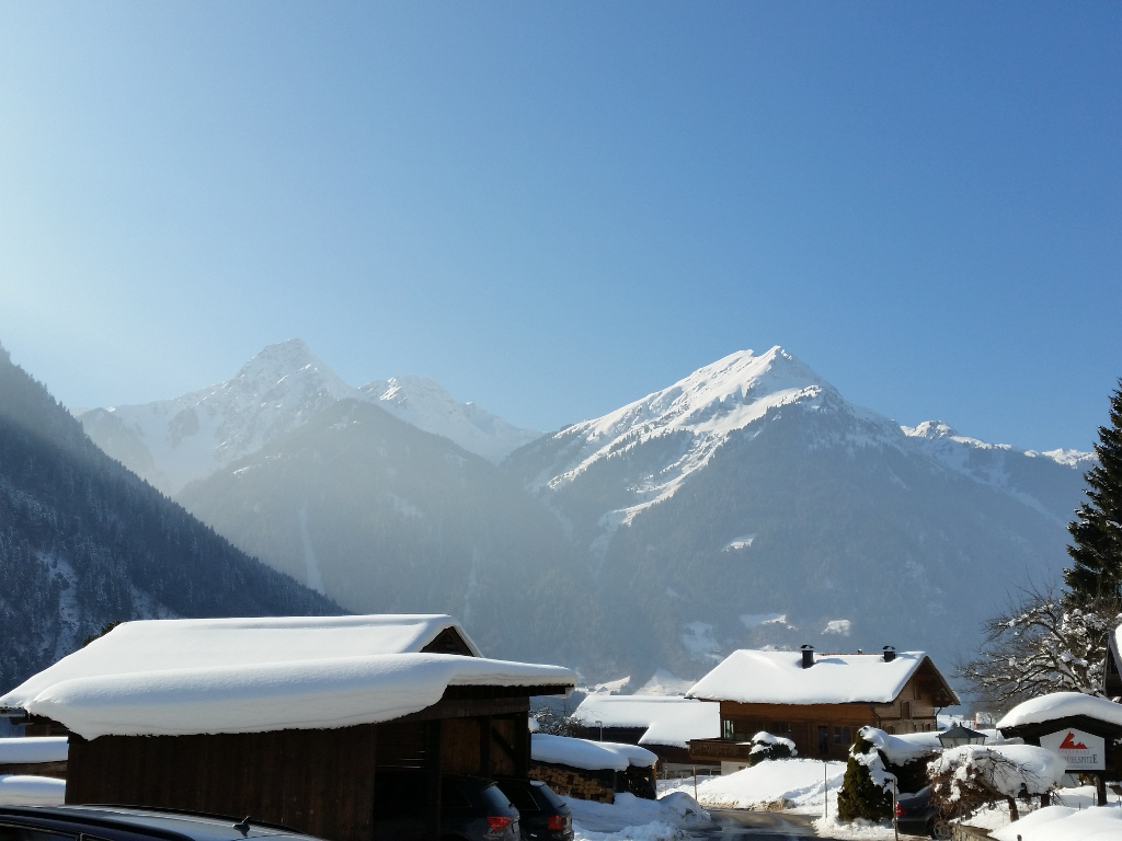 Die Wettervorhersage für morgen (Sonntag) ist noch Nebel und Schnee, aber Mitte der Woche soll es wieder so sein, wie heute. Wir haben nur kurz alles eingeräumt und sind dann runter zur Talstation: Einkleiden und Skikurs buchen.