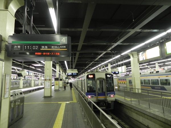 Von Shin-Osaka ging es dann mit der Metro, deren Benutzung und deren Fahrkartenkauf jetzt kein Problem mehr darstellt, in den Stadtteil Namba, dem Einkaufsstadtteil der 2,6 Millionen Einwohner Metropole. In Namba gibt es nämlich auch den Endbahnhof der Nankai-Eisenbahngesellschaft (Namba Nankai) und die fährt von dort aus nach Koya. Genauer gesagt fährt sie nach Gokurakubashi, von wo aus man mit einem Cablecar nach Koya fährt.