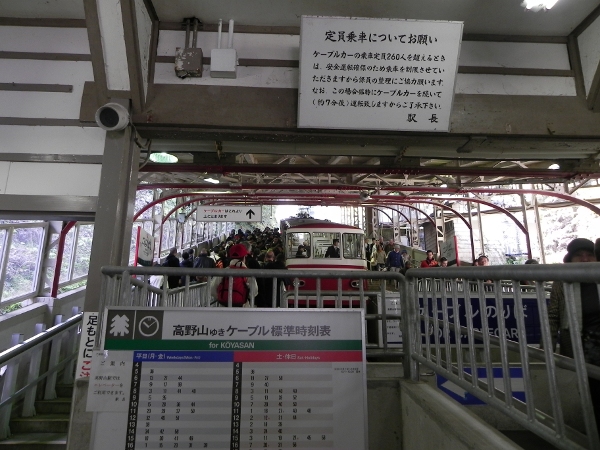 Wir sind also in Namba in einen Rapid Express der KoyaLine eingestiegen. Durch Osaka und die Vorläufer der Gebirge der Kii-Halbinsel ging es dann nach Gokurakbashi, wo bereits das Cablecar auf uns wartete. Da der gesamte Zug in die bereits wartende Bergbahn wie eine Horde Irrer eingefallen ist …