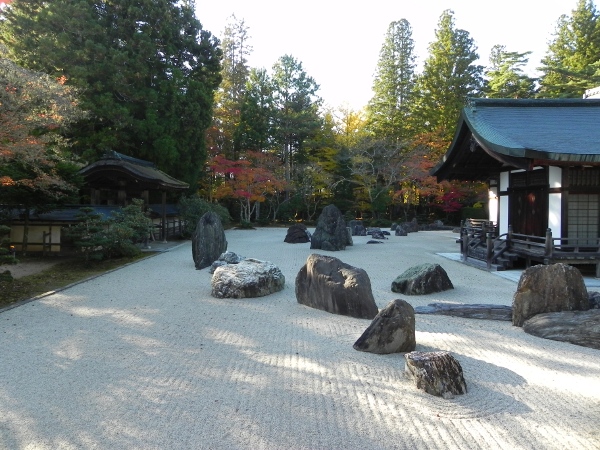 Nach einer kleinen Einweisung und einer Runde durch den Tempelgarten sind wir dann durch Koya spaziert. Zuerst ging es zu einem Tempel namens „Karukayado“, danach zu einem der Weltkulturerbe hier: Dem Kongobuji-Tempel, dem Haupttempel des Shingon-Buddhismus. Im Tempel selber durfte man nicht fotographieren, aber man konnte viele Bilder (vor allem an den Schiebewänden der Zimmer) sehen, die die Geschichte von Kukai (besser bekannt als Kobo Daishi) erzählen.