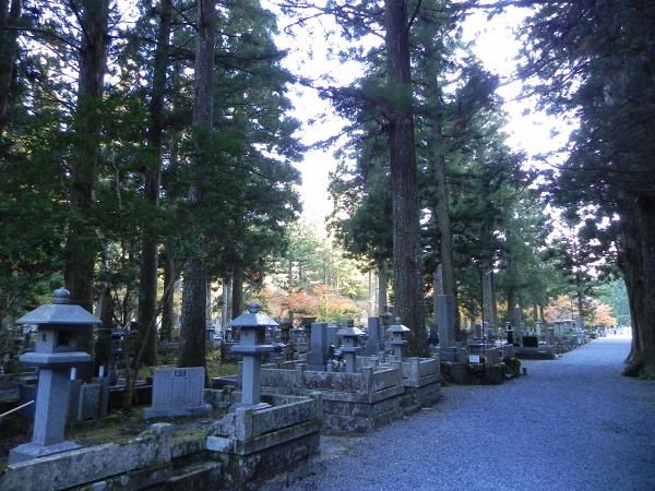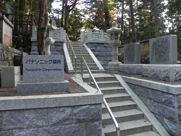 Von da aus sind wir mit dem Koya-Bus zum Okunoin-Tempel gefahren. Und das was wirklich sehr beeindrucken, denn rund um das ebenfalls dort gelegene Mausoleum von Kobo Daishi (in dem er eigentlich noch immer meditiert) sind über 200.000 Grabsteine angelegt. Familiengräber, Firmengräber aber auch Reiche und Berühmte haben sich hier, verbunden mit dem Wunsch in der Nähe von Kobo Daishi zu sein, einen Platz gesichert. Darunter auch japanische Firmen wie Nissan, Toyota oder auch Panasonic.