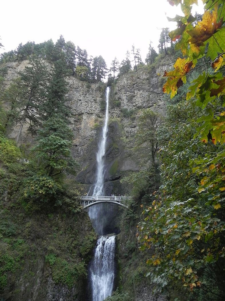 Die Multnomah Falls sind insgesamt 189 Meter hoch und gerade im Winter ist die im Bild zu sehende Brücke etwas gefährlich, denn es brechen oft Steine raus und 2014 hat ein Stein die Brücke getroffen und zerstört.