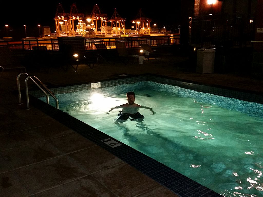 Die anwesenden Amis lagen alle faul im Jakuzzi – die fleissigen Deutschen … nach ein paar Alibi-Runden auch. Aber schöne Sache – mit einem schönen Ausblick.