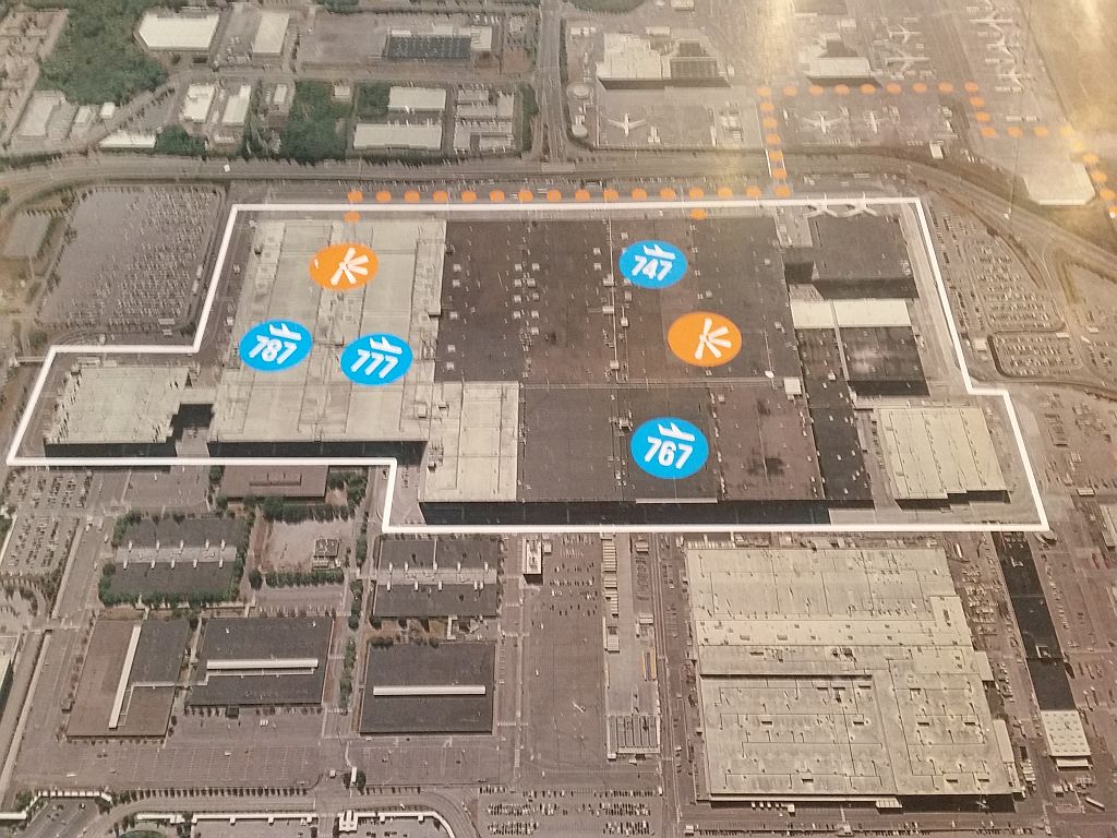 Hauptbestandteil der Tour waren zwei Galerie-Besuche in dem größten Gebäude der Welt, wo die 747, 767, 777 und 787 in einer Art Fließband-Produktion gefertigt werden.