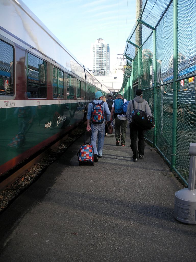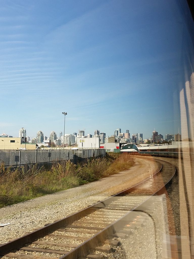 Nach etwa 4 Stunden erreichten wir die ersten Vororte von Vancouver. Im Zug machte sich dann direkt eine Aufbruchstimmung wie im Flugzeug breit, was hier allerdings unnötig ist, da der Zug vor der Station noch diverse Male anhielt.