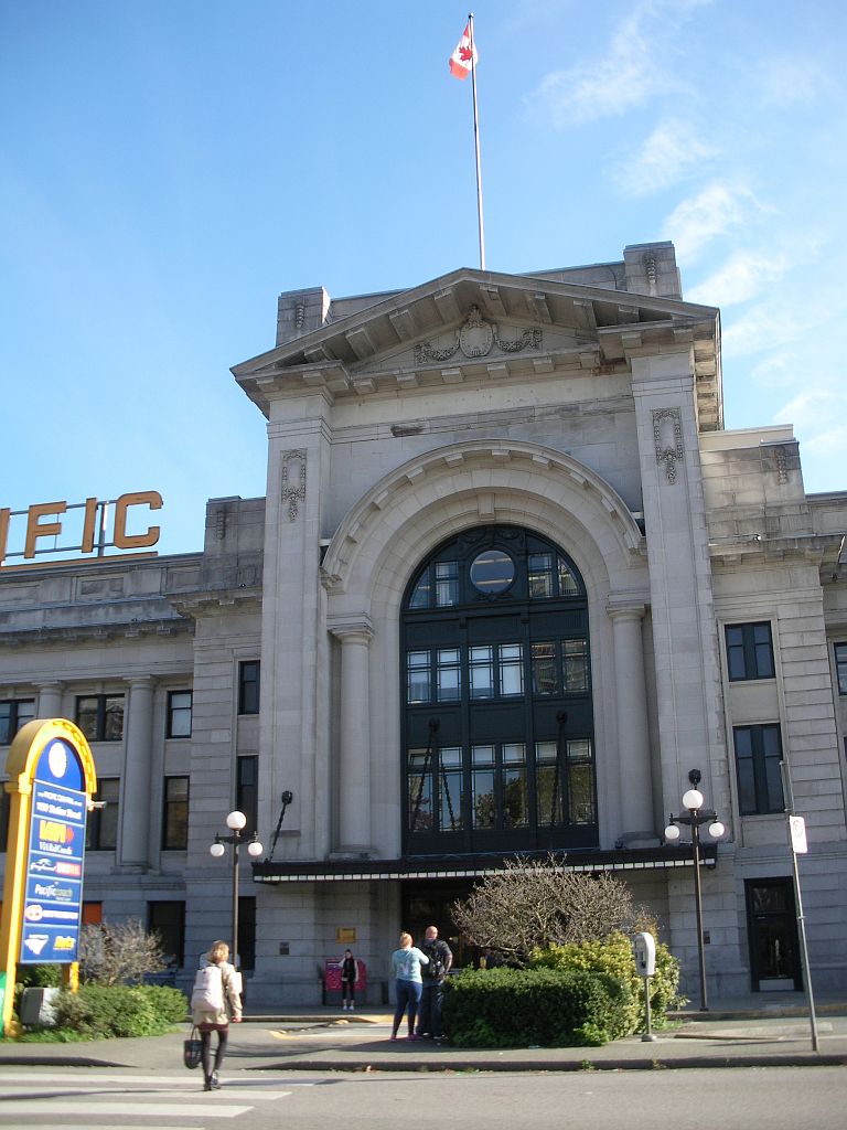 Die Einreise fand dann im Bahnhofsgebäude statt – nach den üblichen Fragen ging es dann raus nach Vancouver. Man beachte das regnerische Wetter …