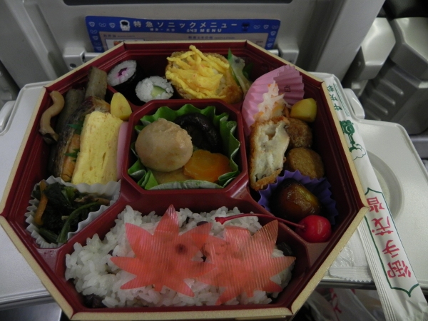 Nachdem wir in Hakata eigentlich relativ pünktlich aufgestanden sind, kamen wir dennoch etwas in Verzug. Grund dafür war unser Gepäck, was wir per Transport nach Hiroshima vorschicken wollten. Leider war der engagierte Mitarbeiter des Hotels zwar bemüht, aber dennoch nicht in der Lage z.B. innerhalb einer gewissen Zeit die Adresse auf meinem Ausdruck von unserem Reisebüro zu lesen. Also hat die ganze Prozedur länger als erwartet gedauert und daher war für das Frühstück weniger Zeit als gedacht. Da nun leider auch der Frühstücksraum total überfüllt war, mussten wir unser Frühstück am Bahnhof kaufen und auf der Fahrt nach Beppu essen. Der Tag hat also schonmal mit ein wenig Stress angefangen, dafür gab es dann zum Frühstück eine leckere BentoBox …