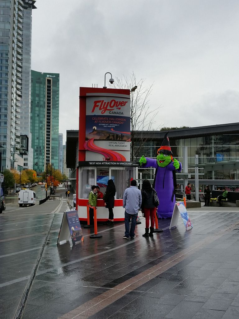 Die Vorstellung dauert etwa 20 Minuten und beinhaltet davon ca. 10 Minuten den Flug. Der Film war schon beeindruckend und passend mit Musik untermalt. Und an den richtigen Stellen spritzte einem Wasser ins Gesicht oder man roch das Meer oder Wald oder Getreide … schon gut gemacht. Die Zielgruppe sind allerdings dann doch eher die direkt daneben am Canada Place anlegenden Alaska-Kreuzfahrtschiffe.