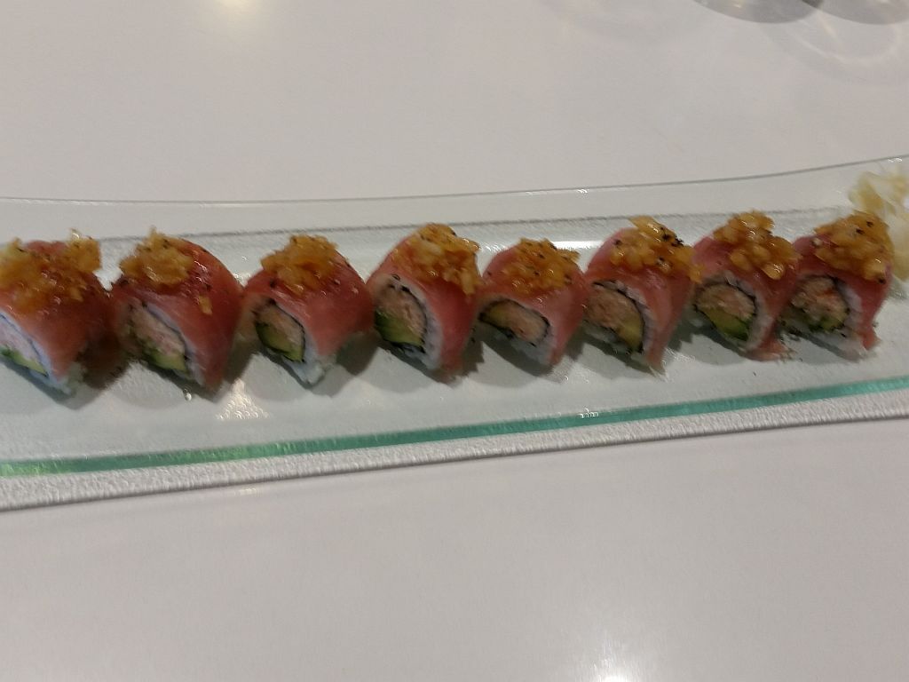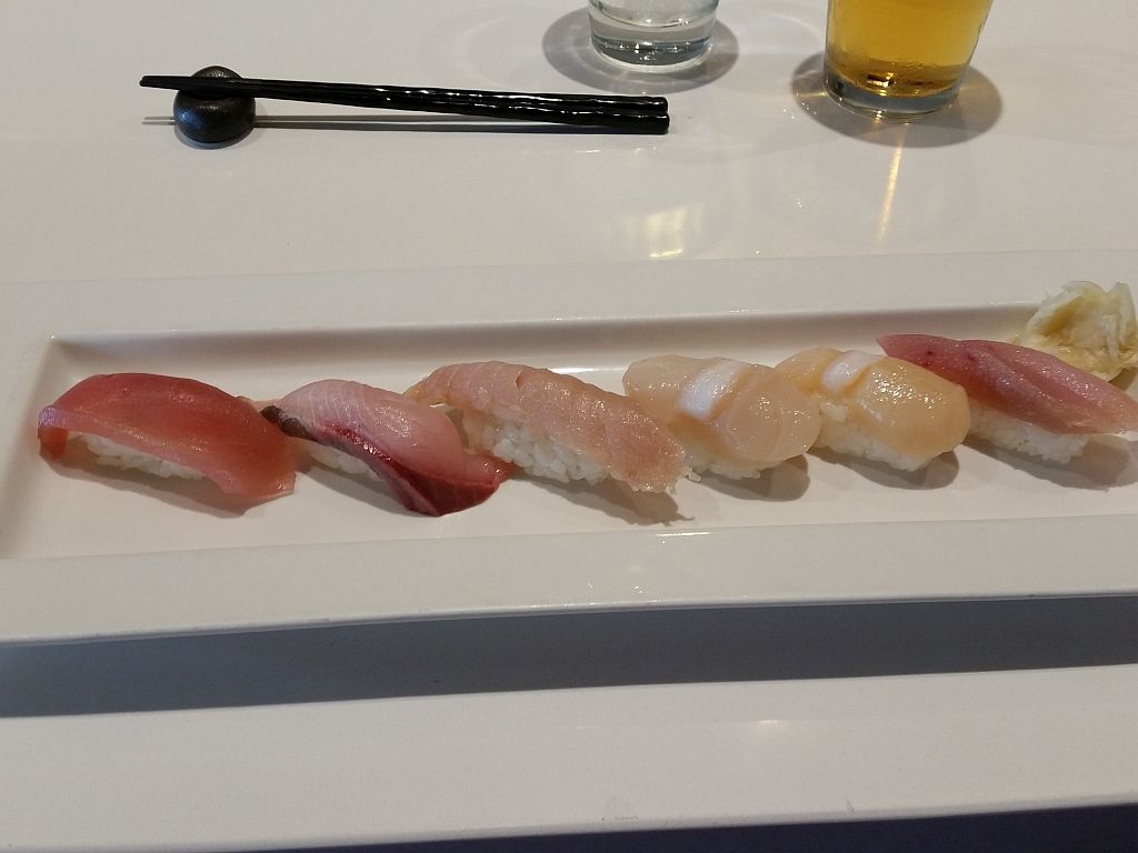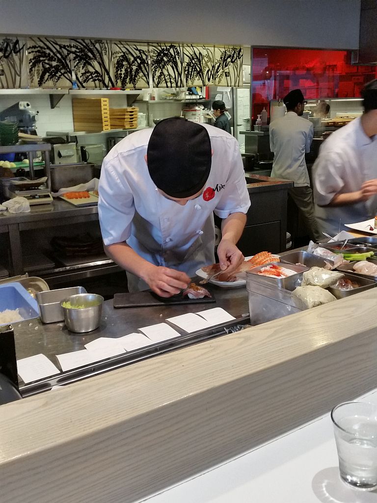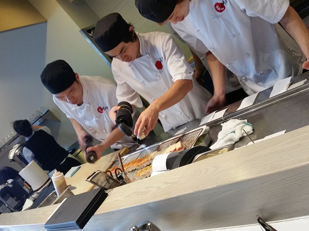 Das Restaurant ist bekannt für seinen Aburi-Style Sushi, d.h. flambierter Fisch. Außerdem gibt es eine Sushi-Bar, d.h. man kann den Köchen beim Sushi-machen zuschauen. Und das war cool.