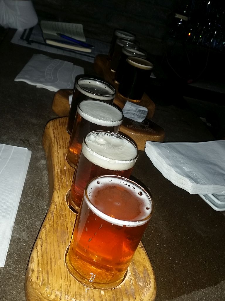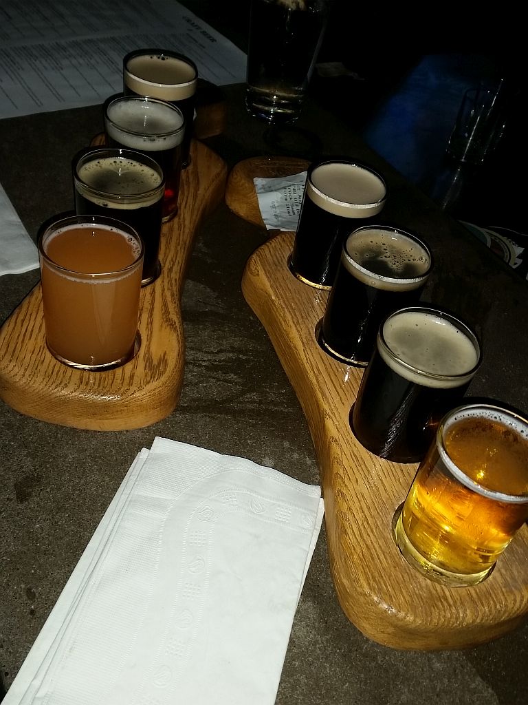 Zum Abendessen haben wir (hatten ja mehrfach feine Küche) wieder dem alkoholischen Getränk zugeneigt. Im Internet haben wir mehrere Brewpubs, also Kneipen mit vielen, vielen Bieren (und was zu Essen) rausgesucht und sind dann einfach mit dem Bus hingefahren.