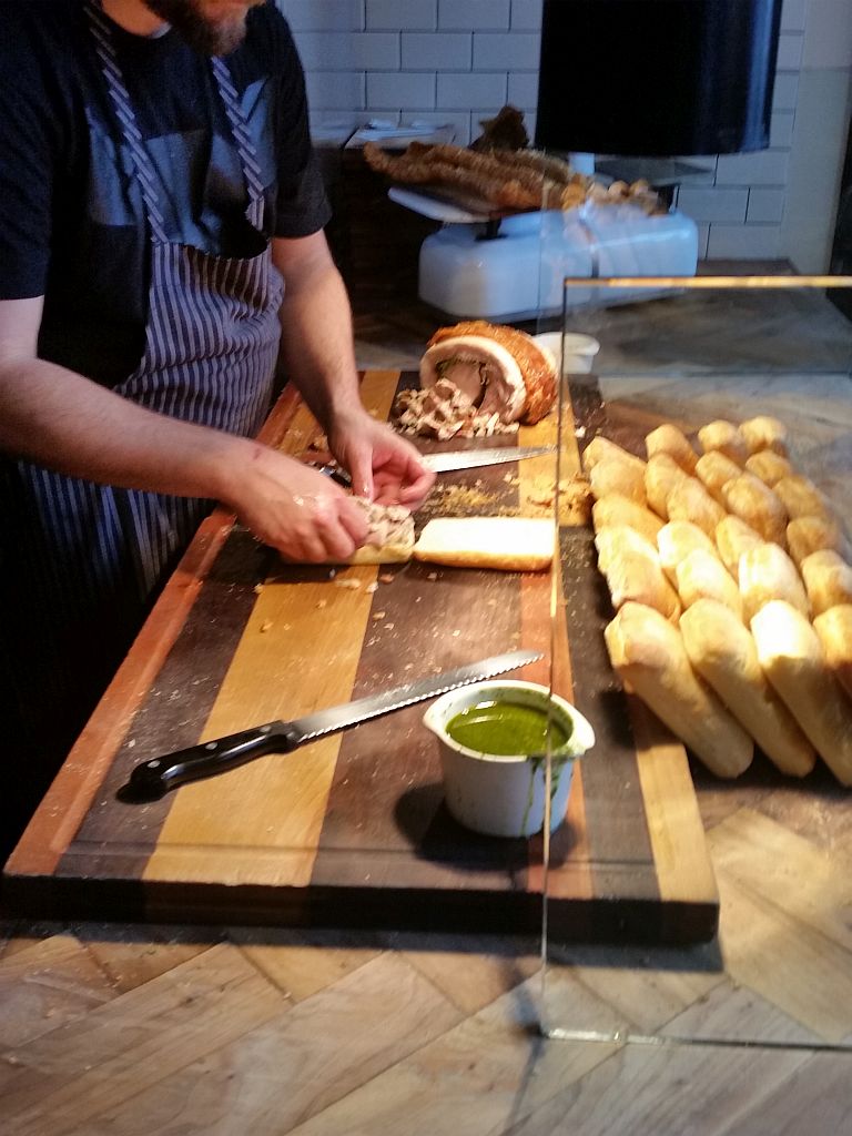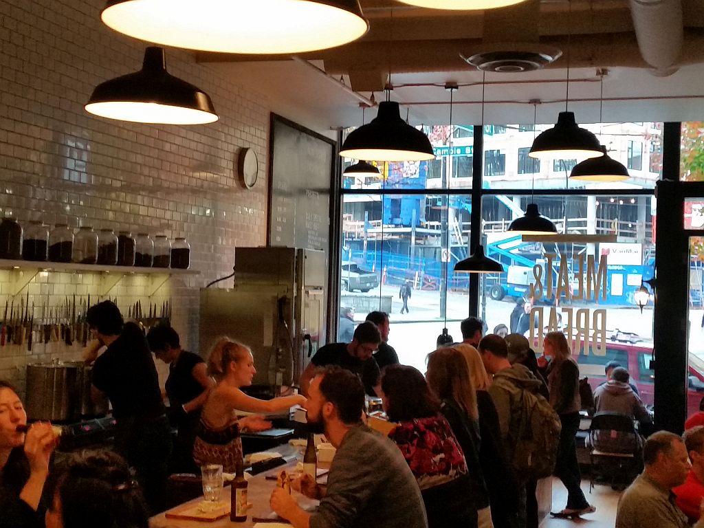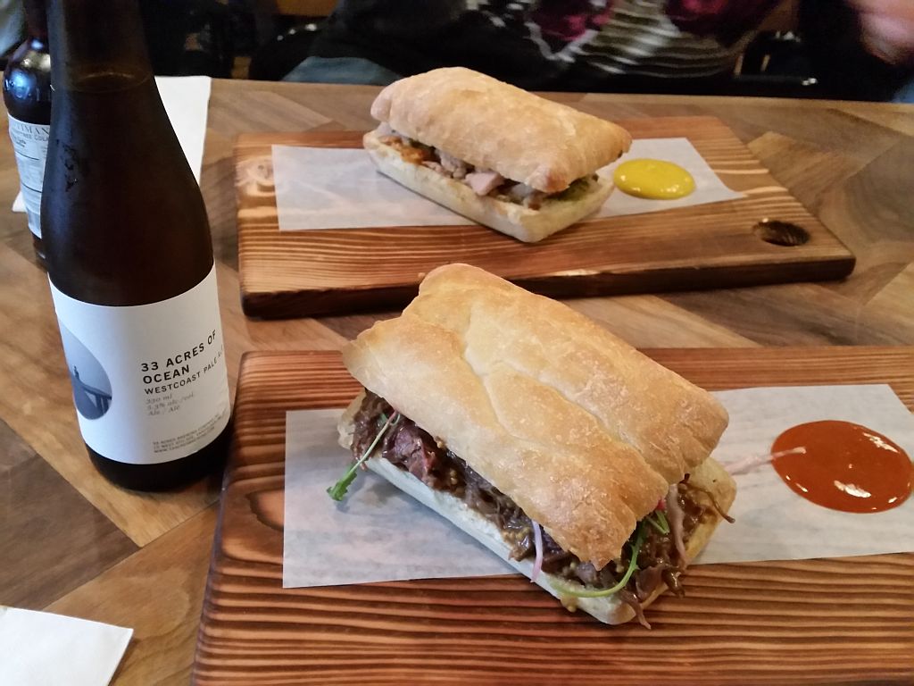 Wie für uns üblich, kam als erstes was zu Essen … Meike hatte den Laden bei ihrem Alleine-Aufenthalt in Vancouver gefunden und wollte da mal hin. Und da der, wie im Prinzip bei allen Essensläden im Business District üblich, nur mittags auf hat, dann mal hin. Der Laden nennt sich „Bread & Meat“ und das ist genau, was es da gibt. Brot und Fleisch. Und Bier.