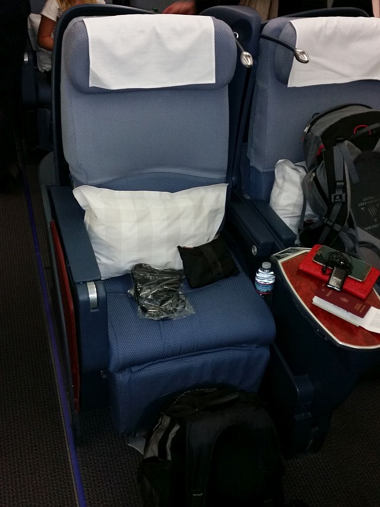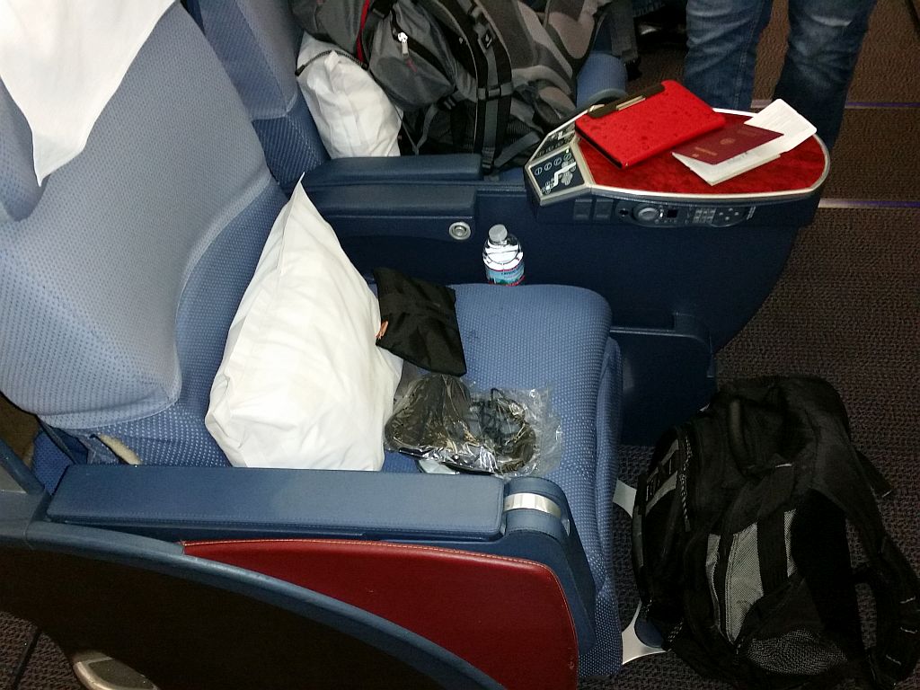 Der Start zögerte sich allerdings fast eine Stunde hinaus, da der Computer zur Berechnung der Ladungsverteilung defekt war und wir so lange warten mussten, bis richtig feststand, wo die Ladung hin sollte. Nach einer Weile ging es los – es gibt aber schlimmere Plätze zum Sitzen als ein Business Class Sitz und etwas zu trinken …