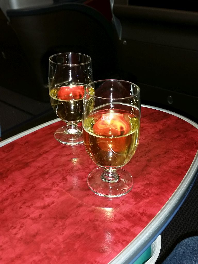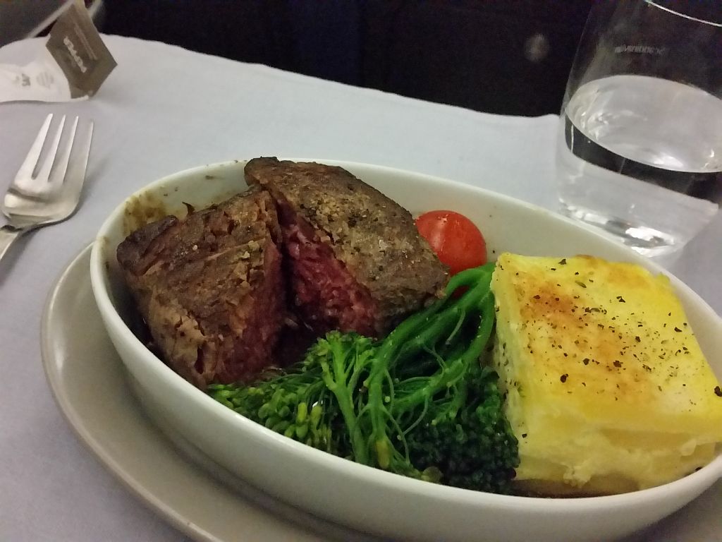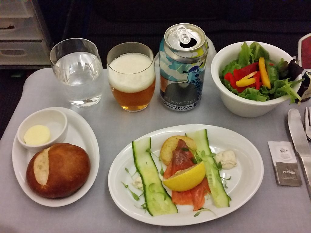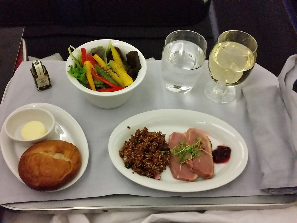 Nachdem der Flug starten konnte, gab es bald dann Essen. Warum wir von Meikes Essen kein Foto haben, schieben wir mal auf die Uhrzeit.