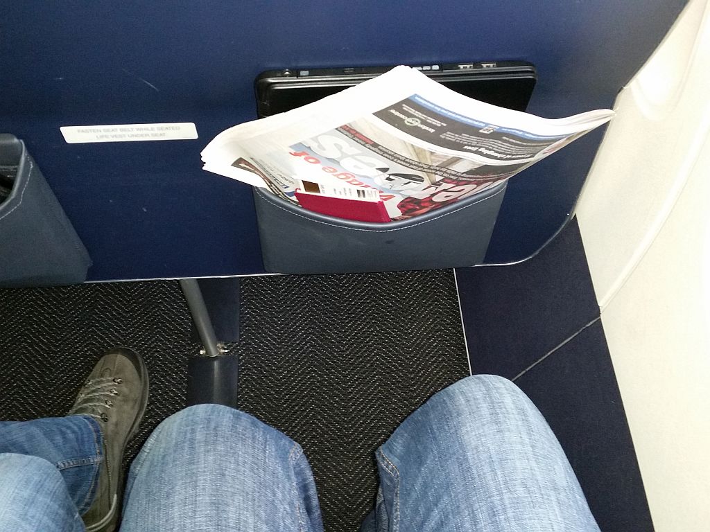 Allerdings nicht, wenn in Zone 2 das halbe Flugzeug ist … egal – wir hatten schöne Plätze wieder direkt, so wie Jens beim Flug von und nach Vegas, hinter der Business Class.