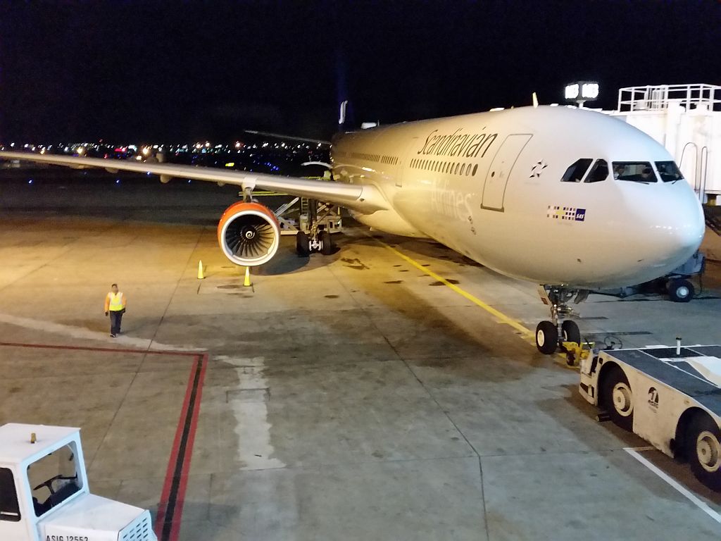 Und dann haben wir den Sitz in ein Bett verwandelt (etwas schräg, da dies noch die alten Sitze von SAS sind, wo man einen sogenannten 175° Sitz hat) und geschlafen. Aufgewacht sind wir erst etwa 30 Minuten vor der Landung.