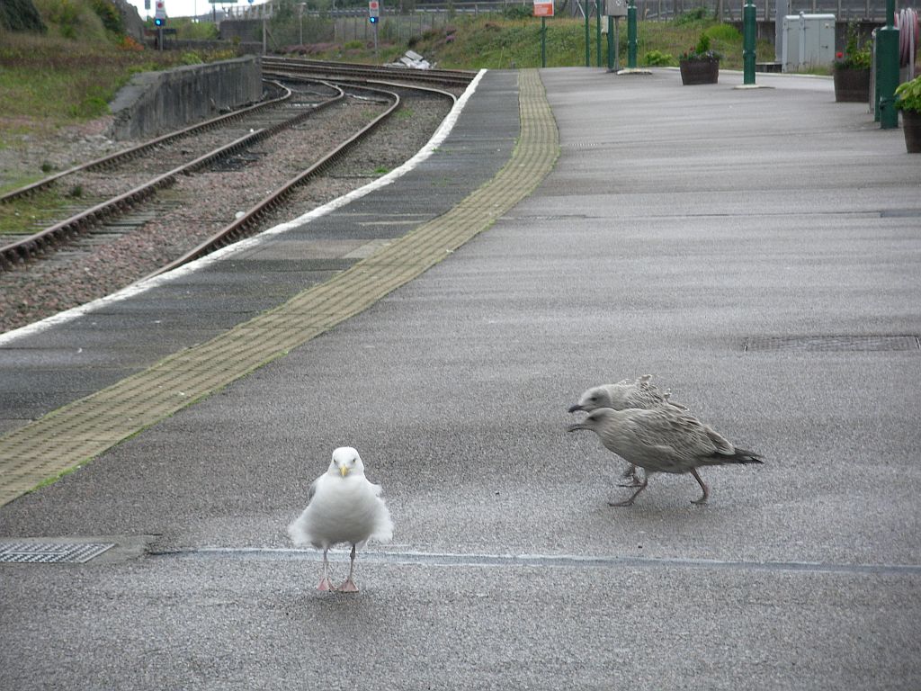 Haben uns dann in der Stadt was umgesehen und uns mit was Essbarem am Bahnhof hingesetzt und auf die Rückfahrt gewartet. Unterbrochen wurden wir nur von einer Möwenmutter, die ihren beiden Kindern das Betteln beigebracht hat. Ohne Witz, die Mutter machte es vor und die beiden Kleinen dann nach. Und wir waren die Lehrhilfen …