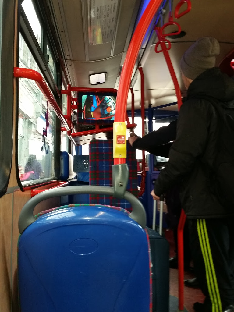 Zum Flughafen ging es mit Bus und Tram – die Busfahrt war mit zwei (jetzt durch die Bierflaschen etwas schwerere) Koffer ein wenig umständlich. Aber ging schon.