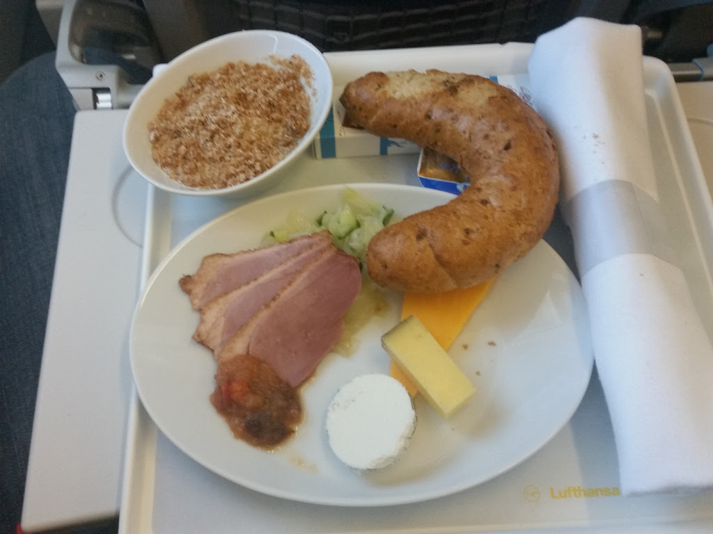 Kurz nach dem Start gab es dann was zu essen – das war schon ein Unterschied zu den Keksen in der Eco.