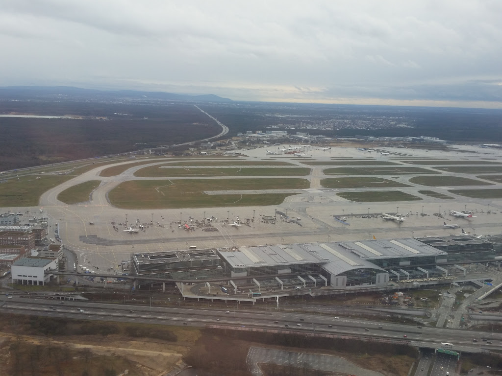 Anflug über das Waldstadion Frankfurt und dann die Landung in Frankfurt.