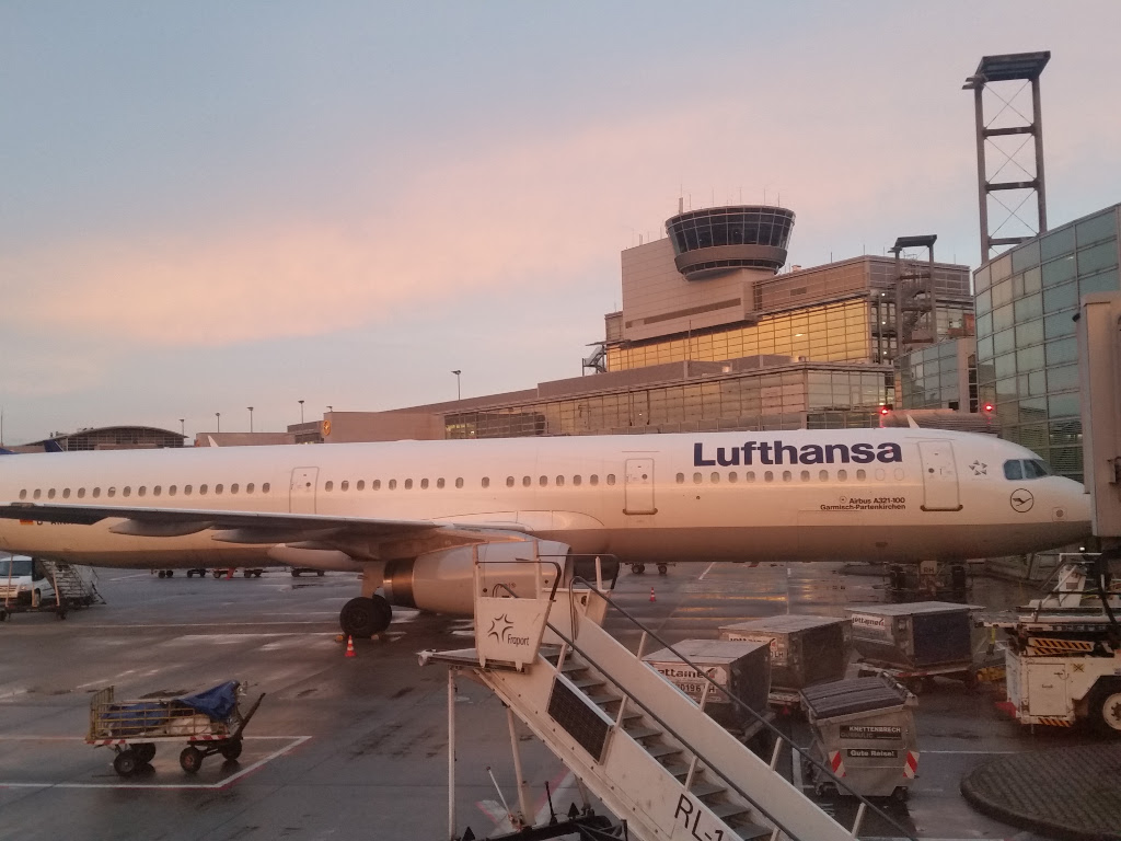 Dort angekommen ging es mit dem Bus zum Terminal und dann dort in die Lounge bis zu unserem Anschlussflug nach Düsseldorf. Die „blaue Stunde“ hatte dabei schon begonnen.