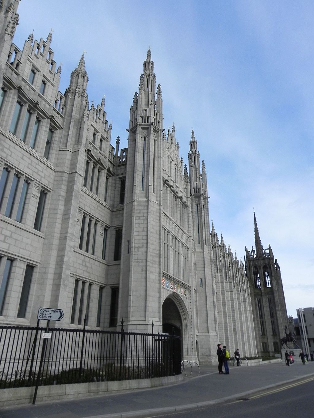 Aberdeen wird auch „Granite-City“ genannt, ein Name der berechtigt ist. Fast alle Gebäude sind aus dem hier in der Nähe abgebauten Granit gebaut worden, was der Stadt einen interessanten Touch gibt. Unsere erste Aktivität bestand daher darin, einen kleinen Spaziergang an den interessantesten Granit-Gebäuden vorbei zu machen.