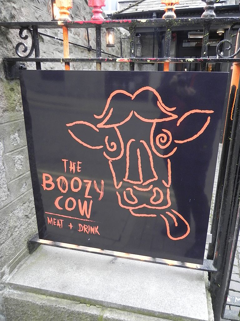 Der Name „Boozy Cow“ kommt übrigens nicht von ungefähr, denn jahrelang wurden die Beiprodukte bei der Bier- und Whiskyproduktion (das benutzte Malz z.B.) wieder an die Landwirtschaft gegeben. Da dieses Futter immer so etwa 1% Alkoholgehalt hatte, waren die Kühe … im Grunde genommen ständig betrunken. Man sagt auch, dass dadurch den Kühen hier lange Haare wachsen würden. 🙂