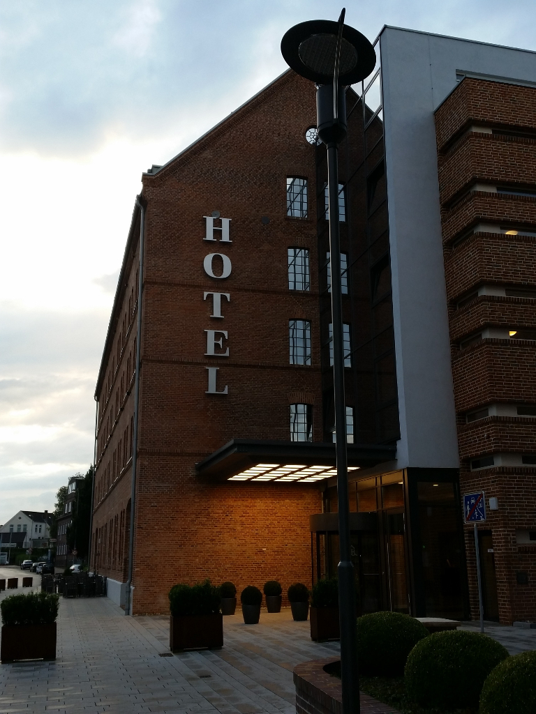 Nach 3 Stunden kamen wir nach einer ereignislosen Fahrt an unserm Hotel an. Das Hotel „Hafenspeicher“ liegt in Leer am Freizeithafen direkt in der Innenstadt nahe der Altstadt. Und dann schauen wir mal, was wir die nächsten Tage so machen …