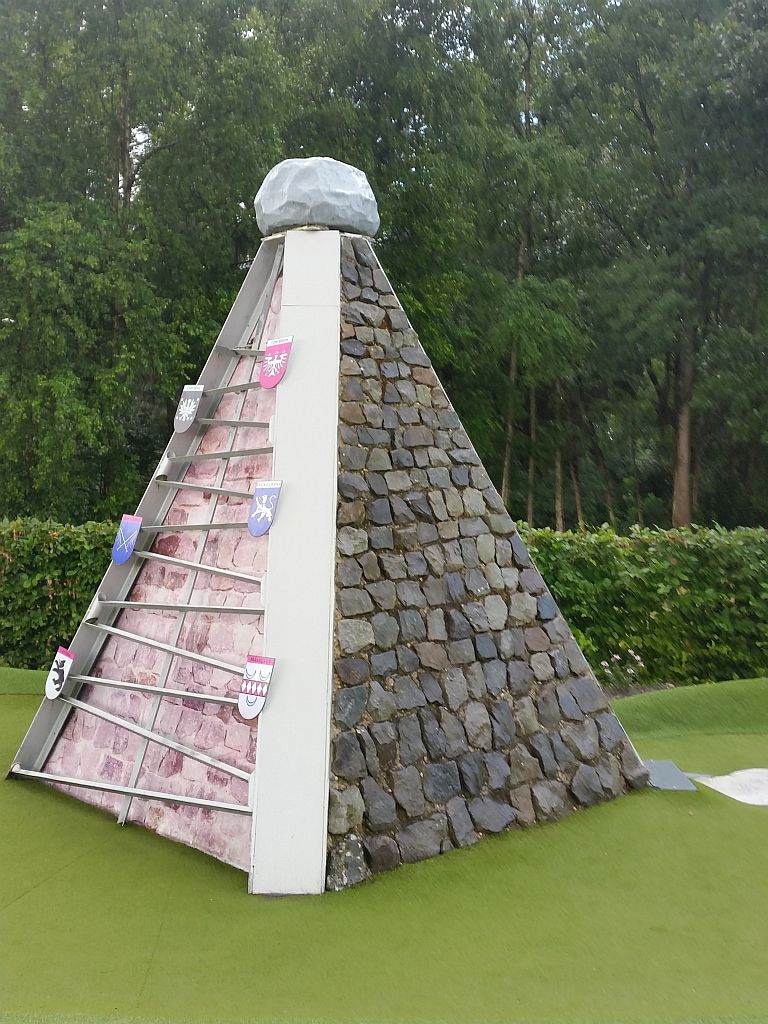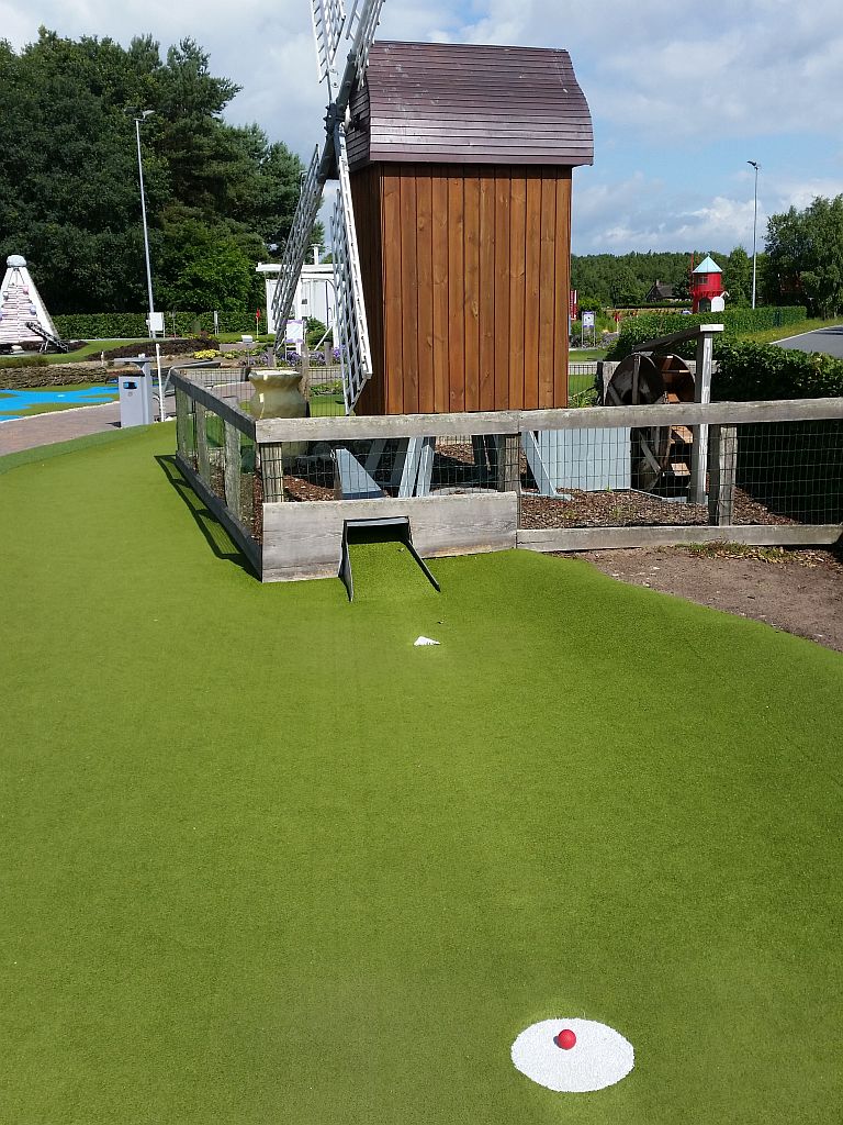 Die Bahn 1 bestand beispielsweise darin, dass man auf eine Rampe spielen musste. Am Ende der Rampe wurde der Ball von einem Mühlenflügel genommen und auf der anderen Seite in ein Trichter geworfen aus dem er dann in Richtung Loch rollte.