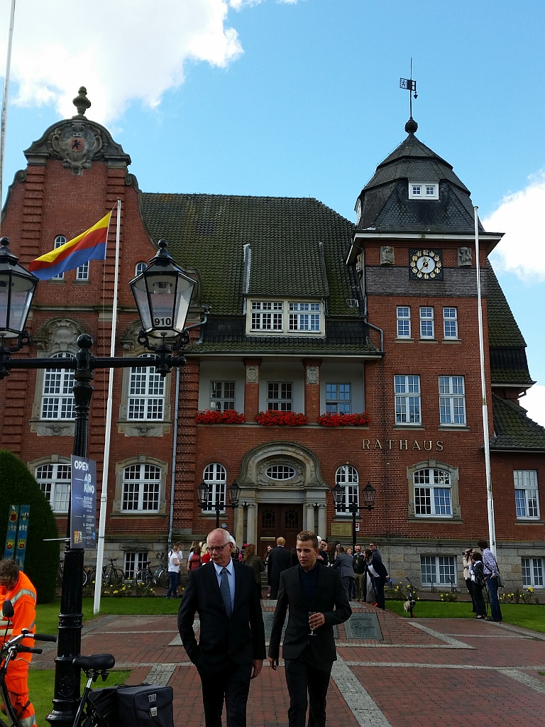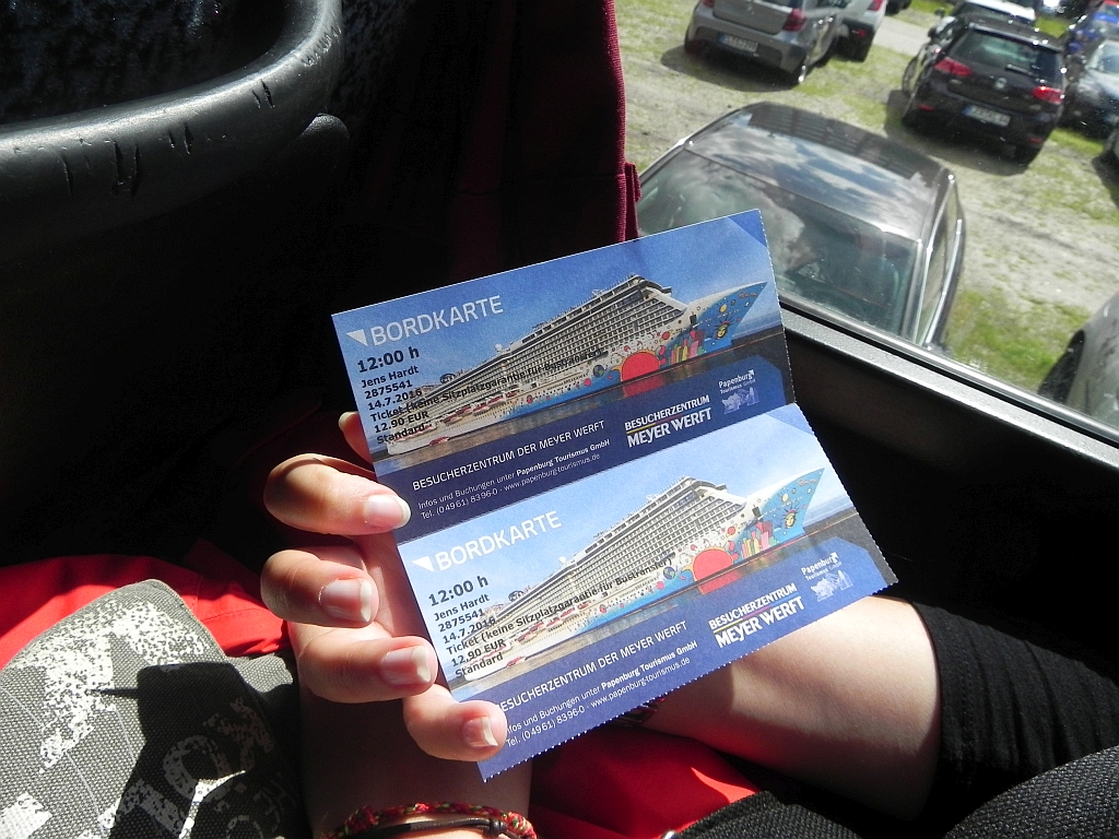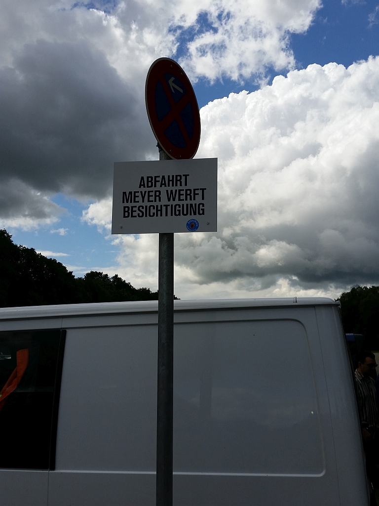 … um 11:30 Uhr Karten für eine Werksführung durch die Mayer Werft abholen. Dies hat auch mit nur etwas Stress geklappt, da anscheinend jede (!) Strasse hier gerade aufgebuddelt wird und somit Umleitungen durch pitoreske aber auch echt weit abgelegene Orte gefahren werden müssen. Naja, hat ja geklappt.
