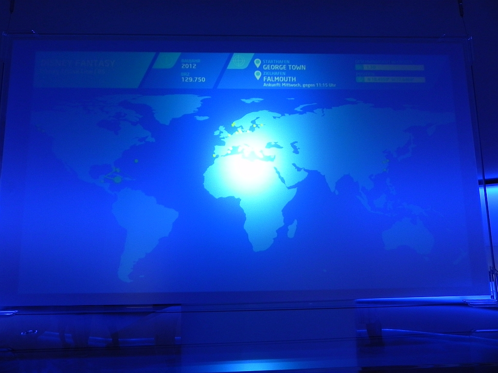 Auch zu sehen ist die aktuelle Position jedes hier gebauten Schiffes in Echtzeit. Die kommen schon was rum, die Boote aus Papenburg … 😉