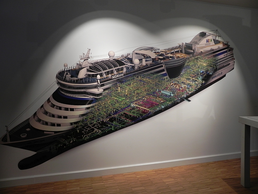 Im Anschluss kommt man in einem Raum, wo Modelle der hier gebauten Schiffe liegen. Die Dimensionen sind beeindruckend.