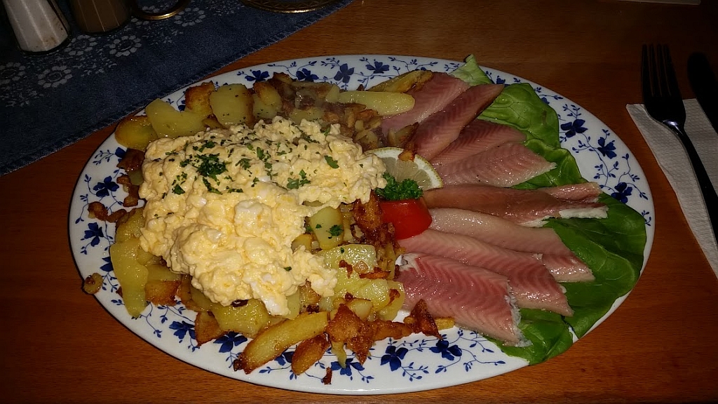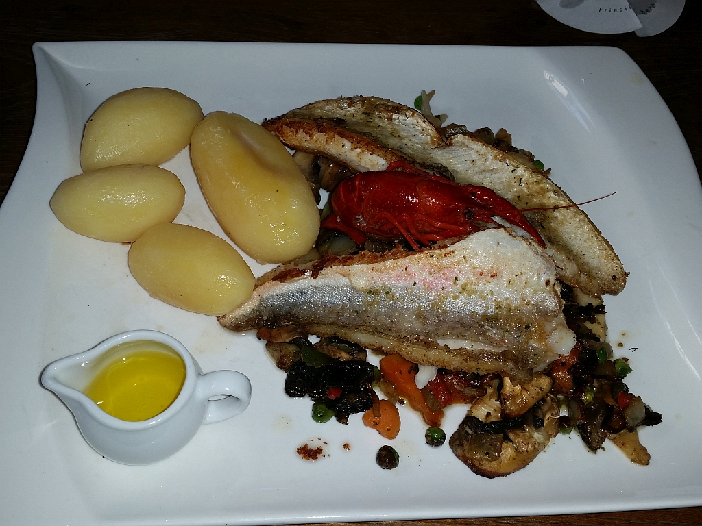 Den dabei üblichen Schnapps haben wir aber nicht genommen, stattdessen sind wir wieder nach Leer gefahren, haben uns ein wenig ausgeruht und sind … richtig: Wieder Essen gegangen. Heute Abend hatte nämlich das Haus Hamburg auf und für einen weiteren Fisch ist ja immer noch Platz. Bei den Beilagen haben wir diesmal aber gespart …