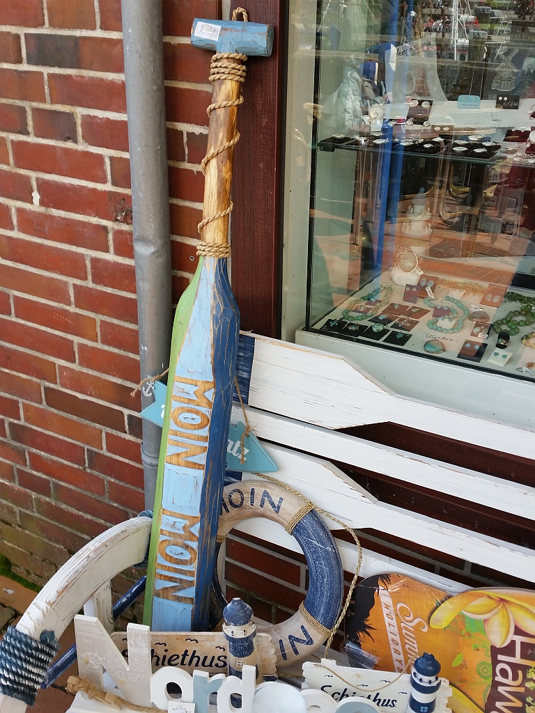 Nach einer Weile wurde es dann wieder etwas schattiger und wir sind dann noch was durch den Ort spaziert. Meike hat dann auch einen Andenkenladen mit der Begründung „habe mich bislang zurückgehalten“ geentert, wobei Jens wie ein Hund draußen gewartet hat. Wenigstens konnte man Paddel (wären für ein paar Gäste aus dem Cafe ganz hilfreich gewesen) …