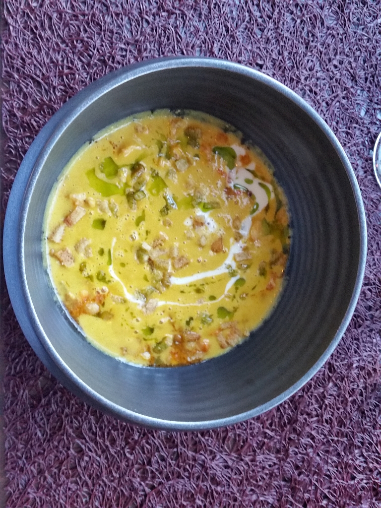 Nett war auch, dass das Restaurant in einem ehemaligen Arztpraxis liegt (die weitere Geschichte des Hauses wurde uns zwar erzählt, wir haben sie aber ehrlich gesagt vergessen). Beim Einlass waren wir auch die zweiten Gäste und wurden nett begrüsst. Im Verlauf des Abends waren aber auch insgesamt nur 5 Tische besetzt – irgendwie fühlte sich das Restaurant etwas „leer“ an (man verzeihe mir den Wortwitz). Im Nachgang haben wir erfahren, dass der Inhaber unseres Hotels schräg hinter uns gesessen ist …