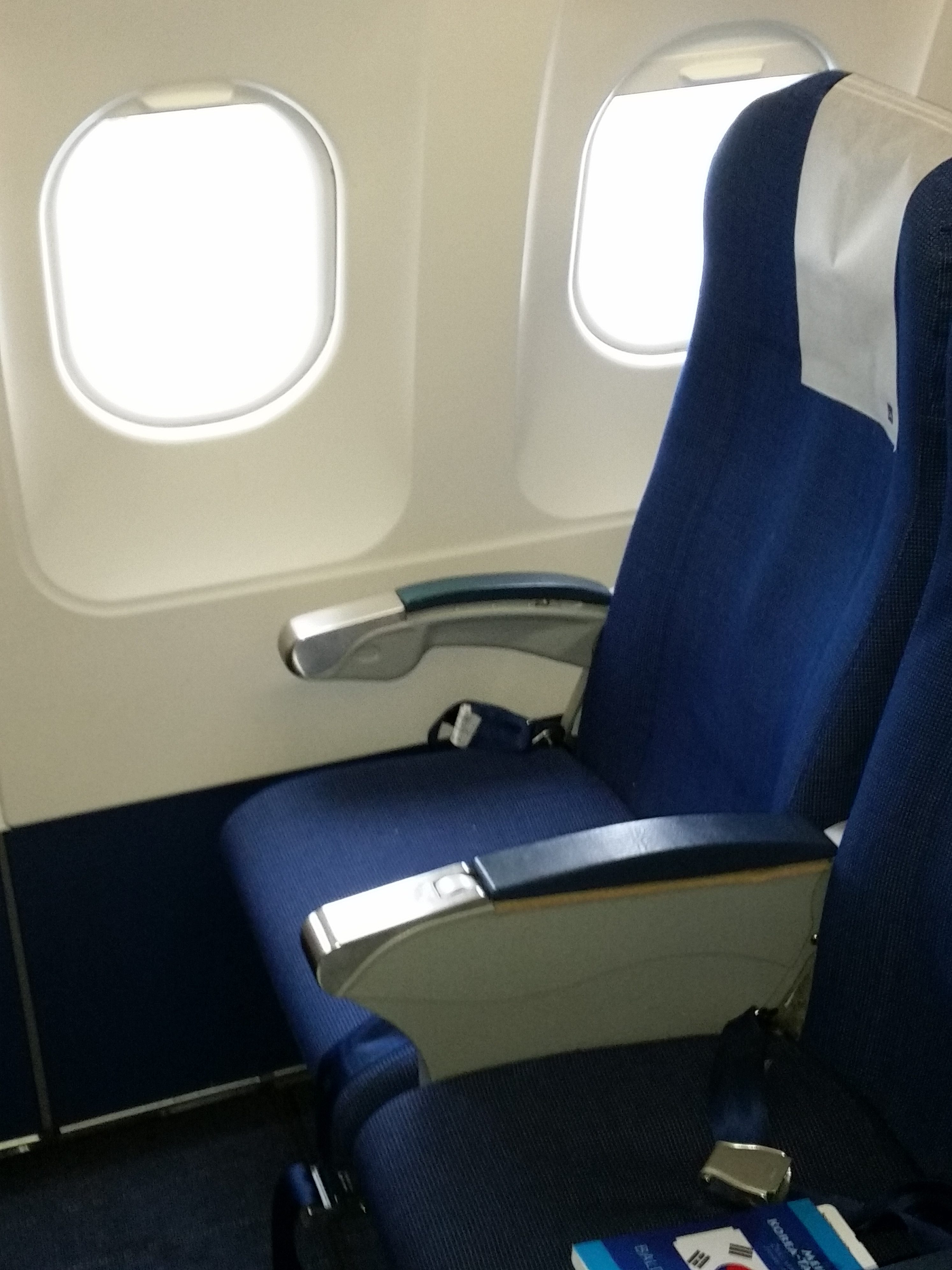 Und dann ging es auch (als erstes! Wir haben uns vor die ganzen „Gate lices“ gedrängelt) ins Flugzeug zu unseren Plätzen in der ersten Reihe.