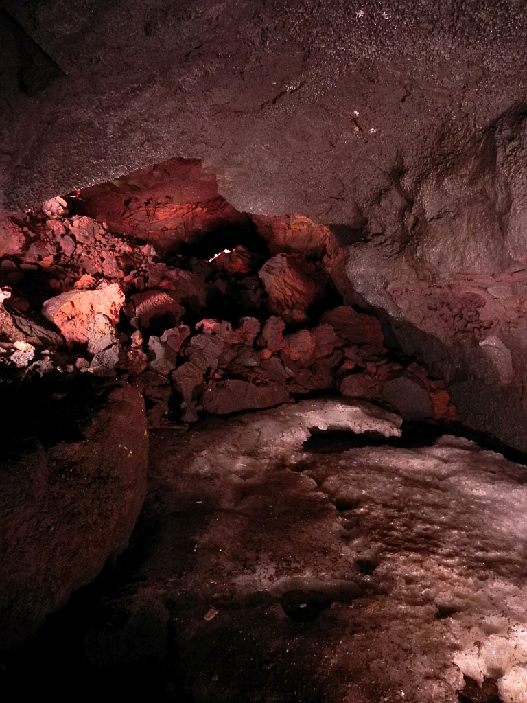 Das Wetter war übrigens jetzt deutlich kälter als gedacht (unsere kurzen Hosen waren jetzt deutlich zu wenig) – der Einstieg in die Höhle mit dem Namen „Ice Cave“ machte das alles nicht besser. In der Höhe liegt die Temperatur auch im Sommer in der Regel um die 0 Grad, weswegen das ganze Jahr Eis dort liegt.