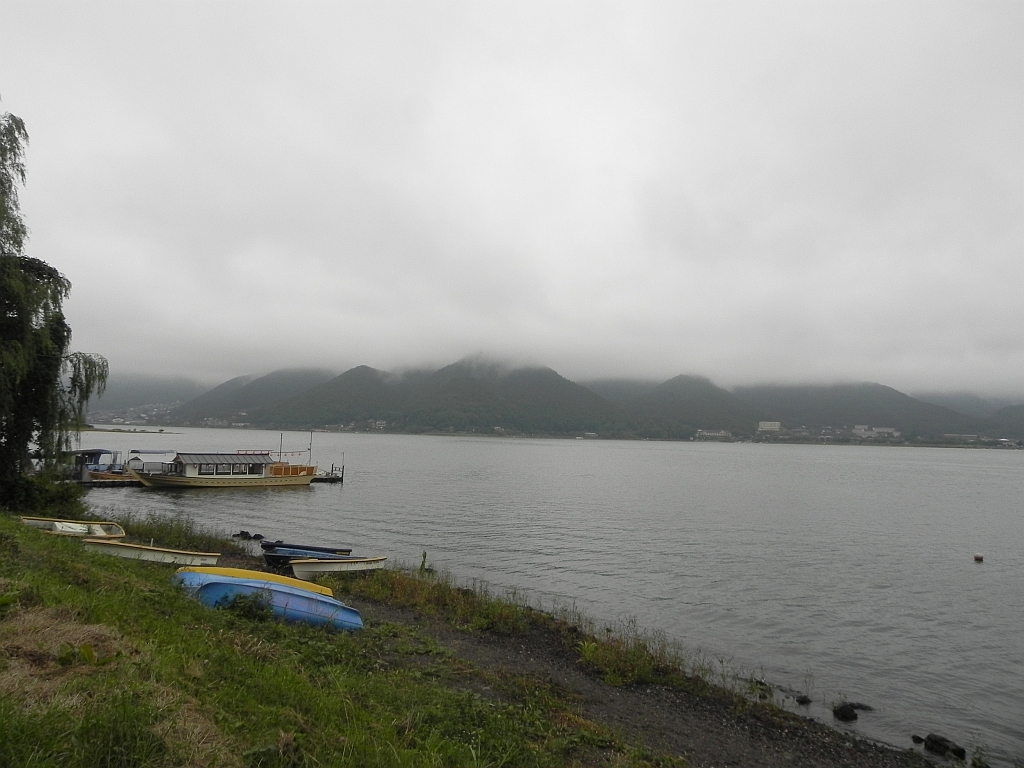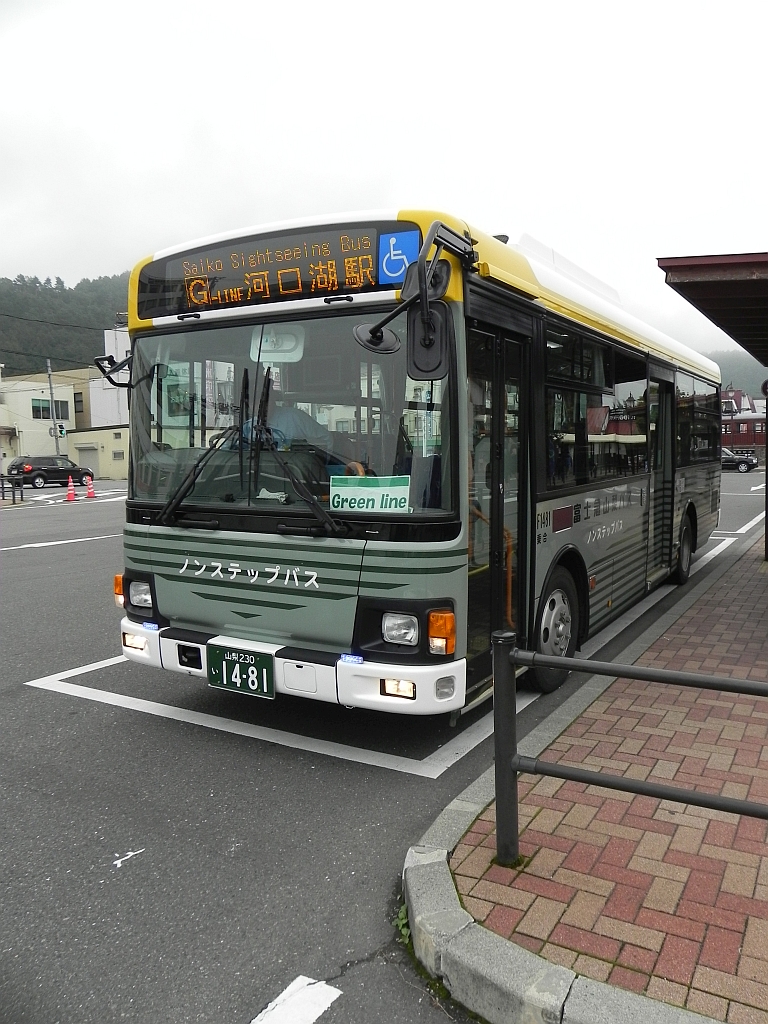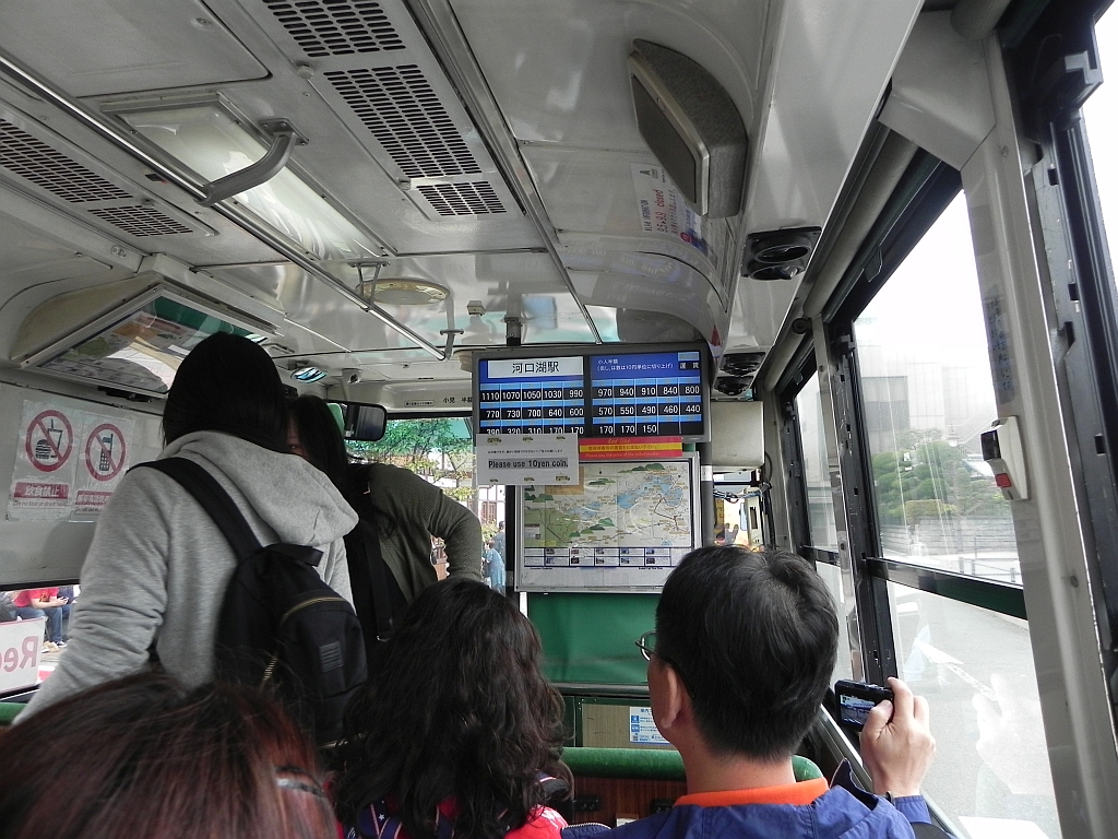 In Kawaguchiko angekommen, mussten wir uns erst einmal orientieren – die Bahnstation ist quasi der zentrale Knotenpunkt für die (bei Japan recht beliebte) Region um den Fuji herum. Von hier aus fahren viele Busse, z.B. zur 5. Station (von 10 – die 10. ist der Gipfel) vom Fuji oder eben zu den 5 Seen. Dementsprechend waren auch, trotz des Wetters, viele Leute hier und zwei deutsche Touris gehen hier unter.